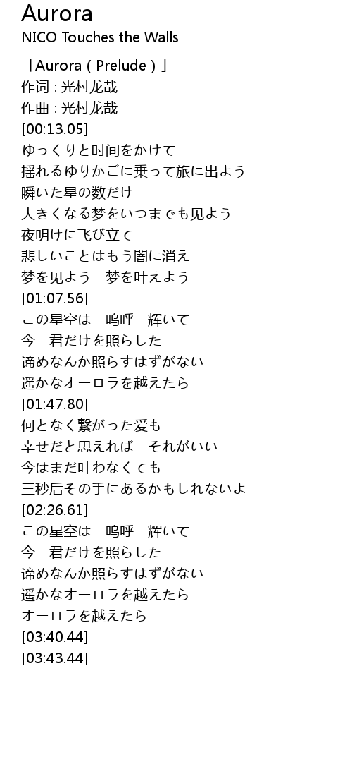 | [00:01.05] | 「Aurora(Prelude)」 |