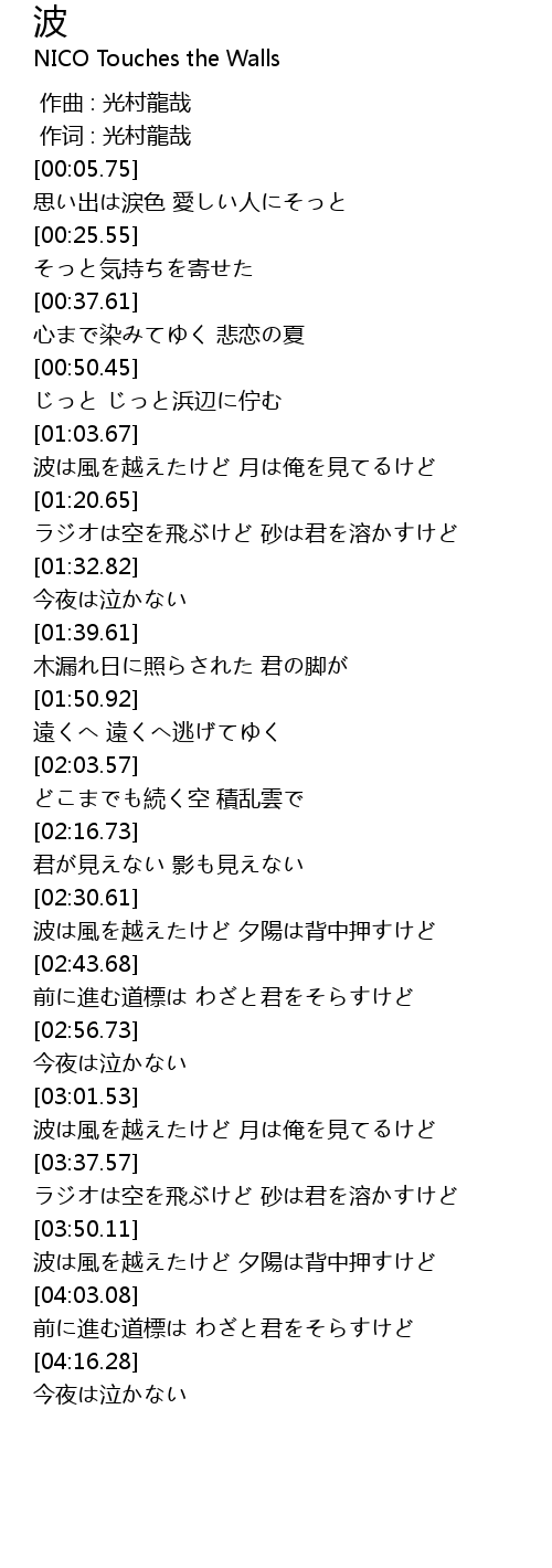 | [03:52.65] | 波は風を越えたけど 夕陽は背中押すけど |