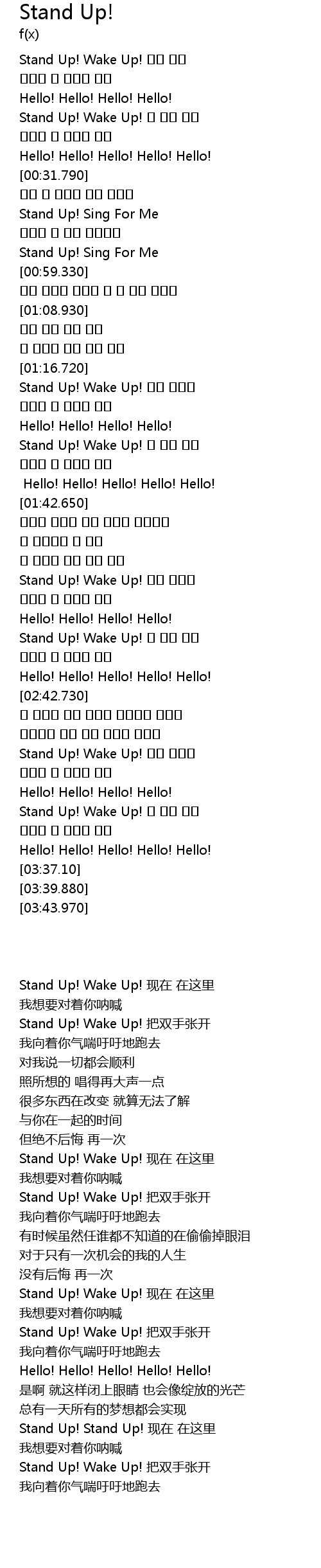 | [00:17.800] | Stand Up! Wake Up! 두 팔을 벌려 |