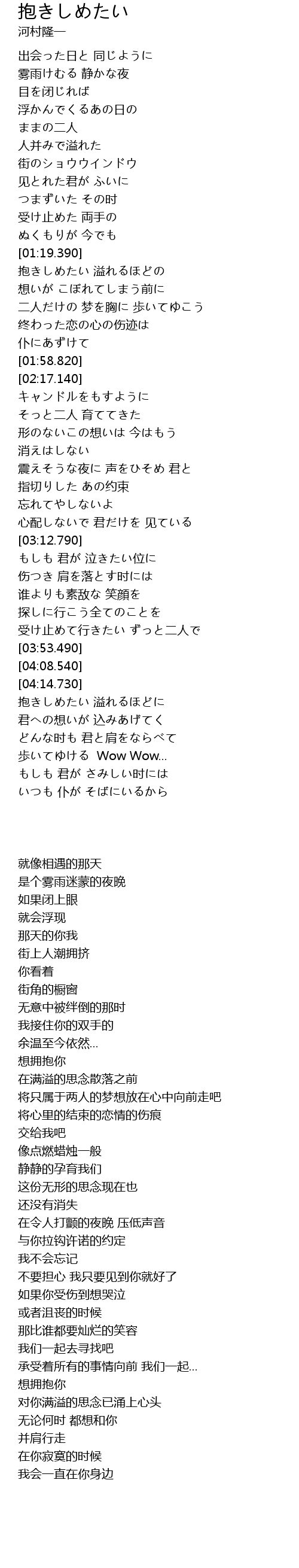 | [04:20.680] | 想拥抱你 |