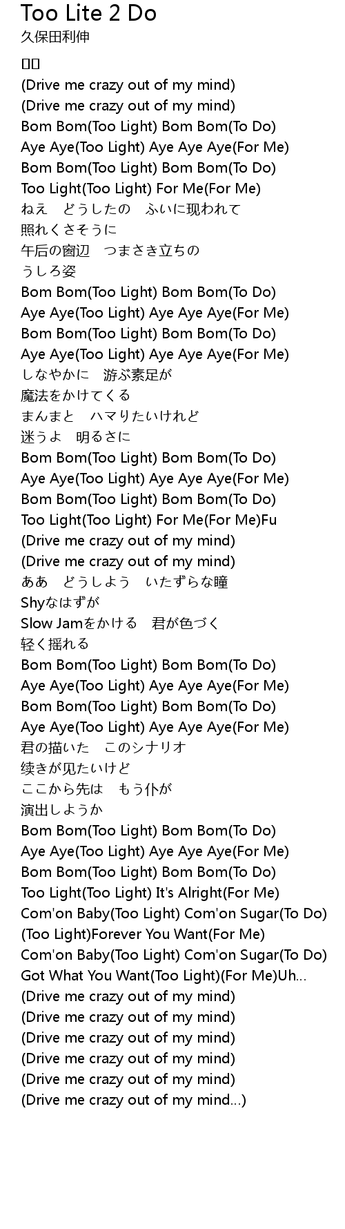 | Com'on Baby(Too Light) Com'on Sugar(To Do) | |