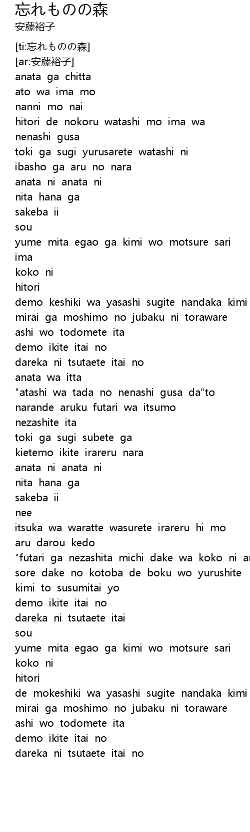 | [00:39.49] | toki ga sugi yurusarete watashi ni |