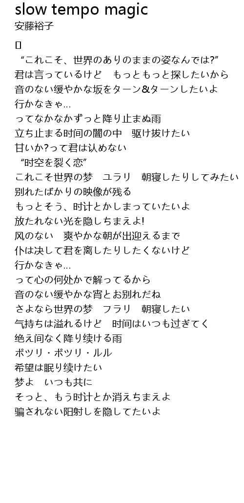 | 歌曲 | slow tempo magic |