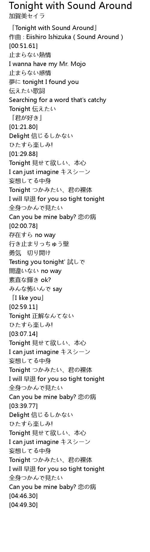 | [00:11.61] | 「Tonight with Sound Around」 |