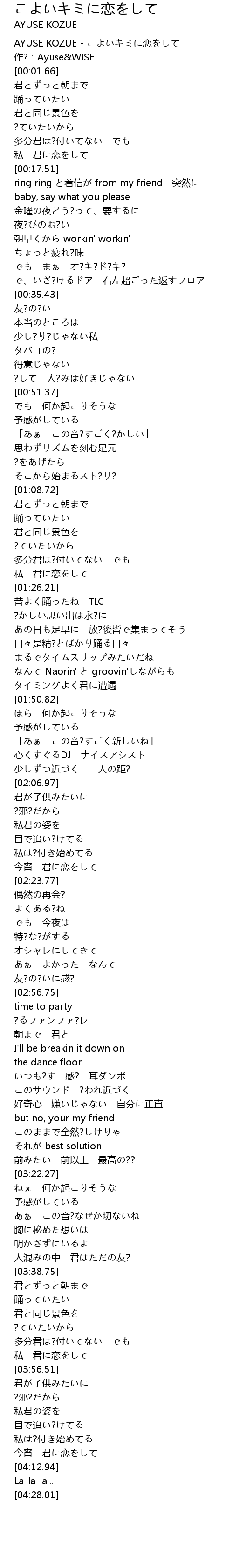 | [00:00.36] | AYUSE KOZUE - こよいキミに恋をして |