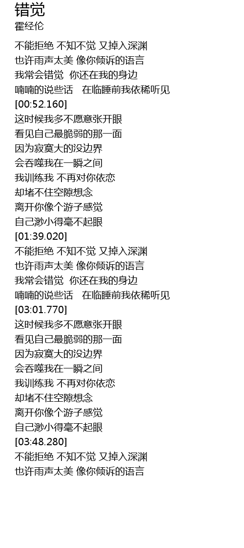| [02:20.830] | 不能拒绝 不知不觉 又掉入深渊 |