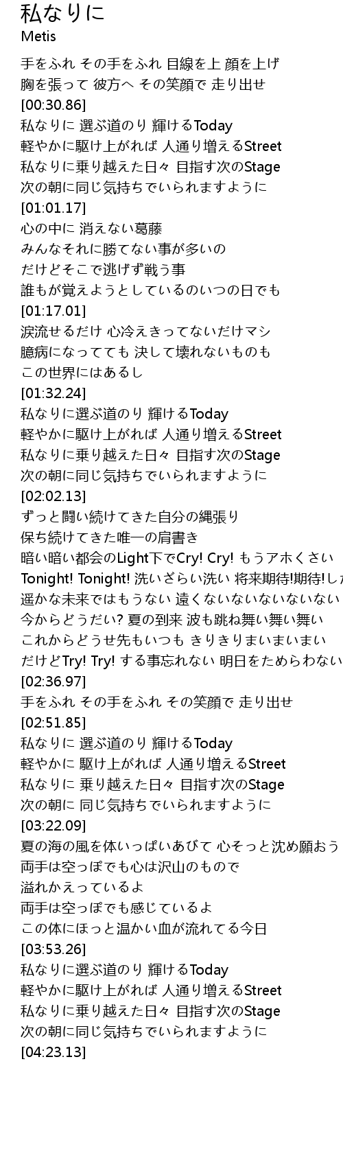 | [03:53.50] | 私なりに選ぶ道のり 輝けるToday |