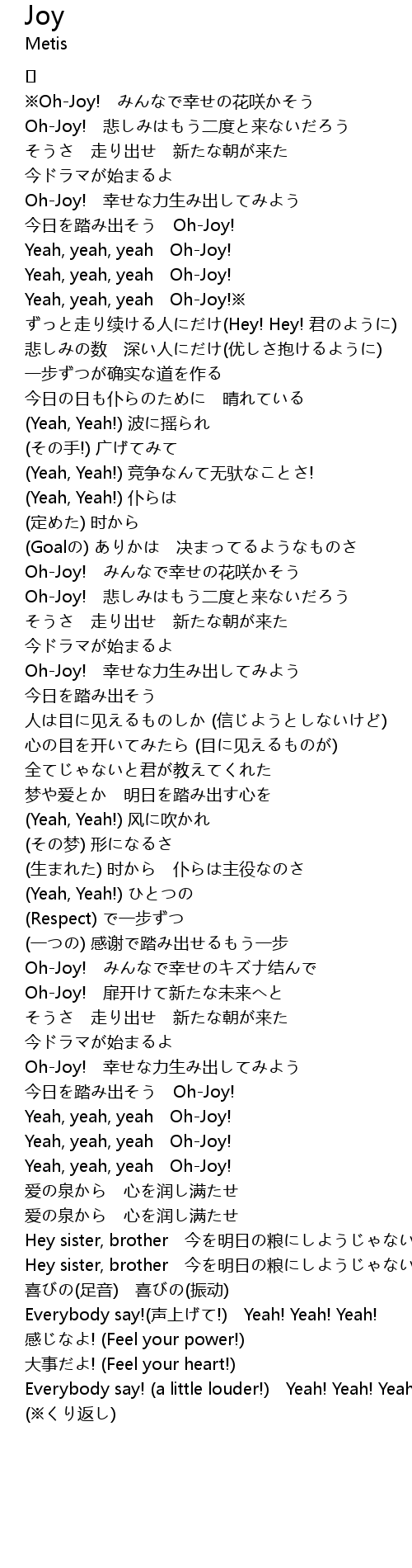 | Yeah, yeah, yeah Oh-Joy!※ | |