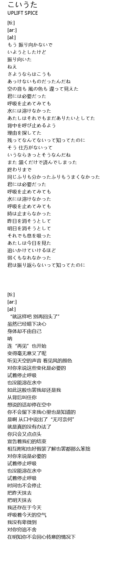 | [01:48.60] | 同じふりも分かったふりもうまくなかった |