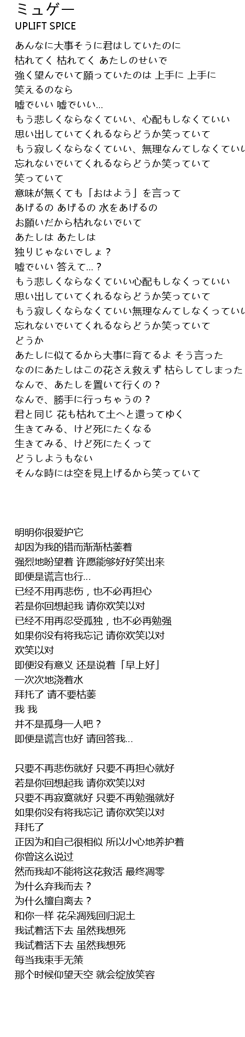 | [01:41.84] | 拜托了 请不要枯萎 |