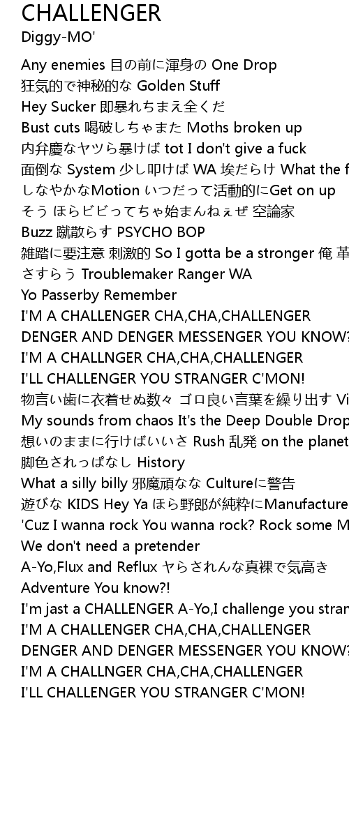 | I'm jast a CHALLENGER A-Yo,I challenge you stranger C'mon! | |