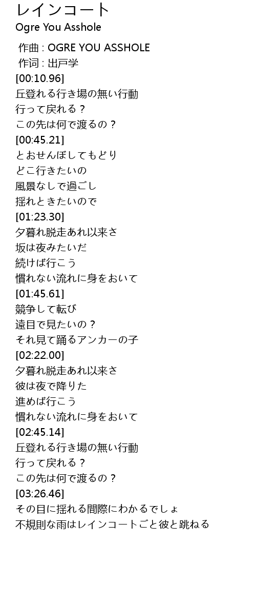 | [00:00.00] | 作曲 : OGRE YOU ASSHOLE |