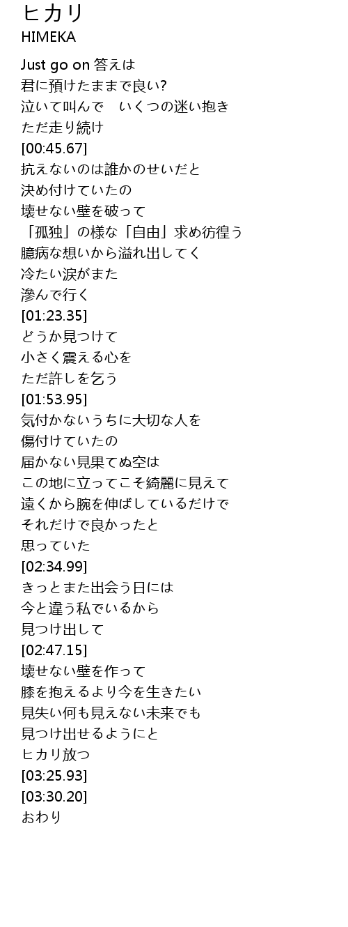 | [03:02.74] | 膝を抱えるより今を生きたい |