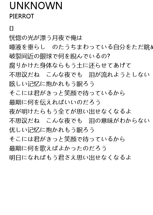 | 夜が明けたらもう全てが思い出せなくなるよ | |