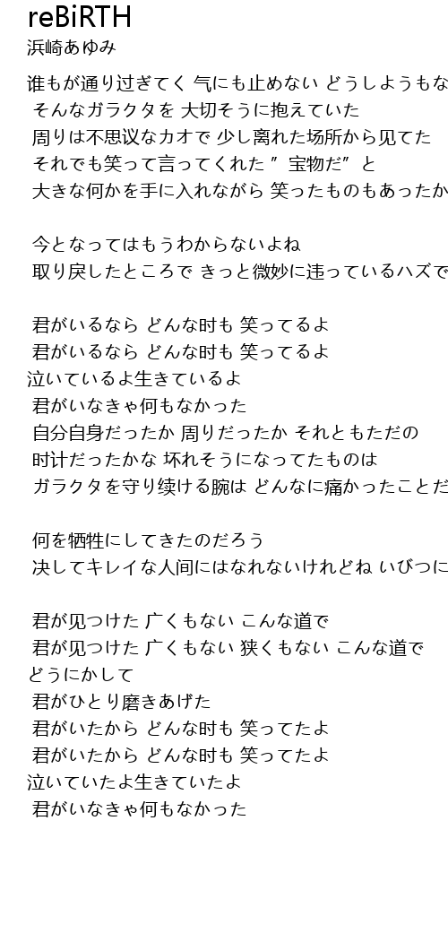 | 君がいたから どんな时も 笑ってたよ 泣いていたよ生きていたよ | |