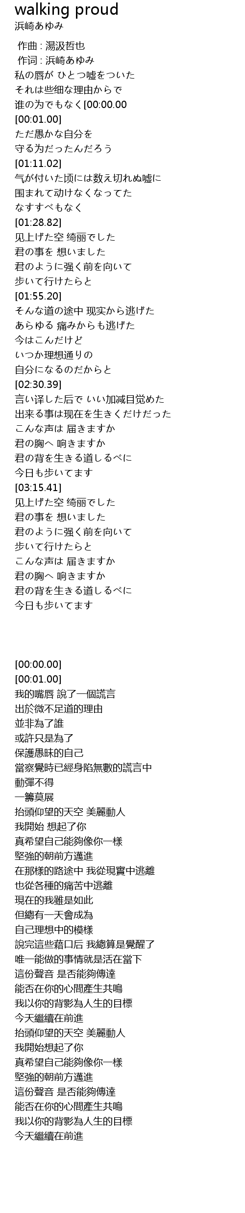 | [00:00.00] | 作词 : 浜崎あゆみ |