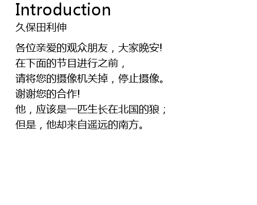| [00:09.37] | zài xià miàn dí jié mù jìn xíng zhī qián, |