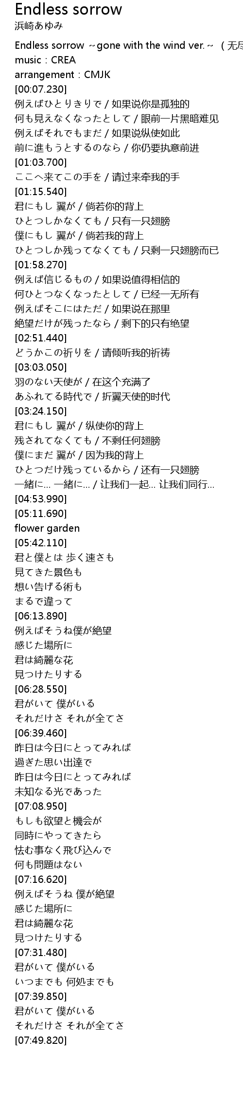 | [0-1:57.600] | Endless sorrow ~gone with the wind ver.~ (无尽伤悲) |