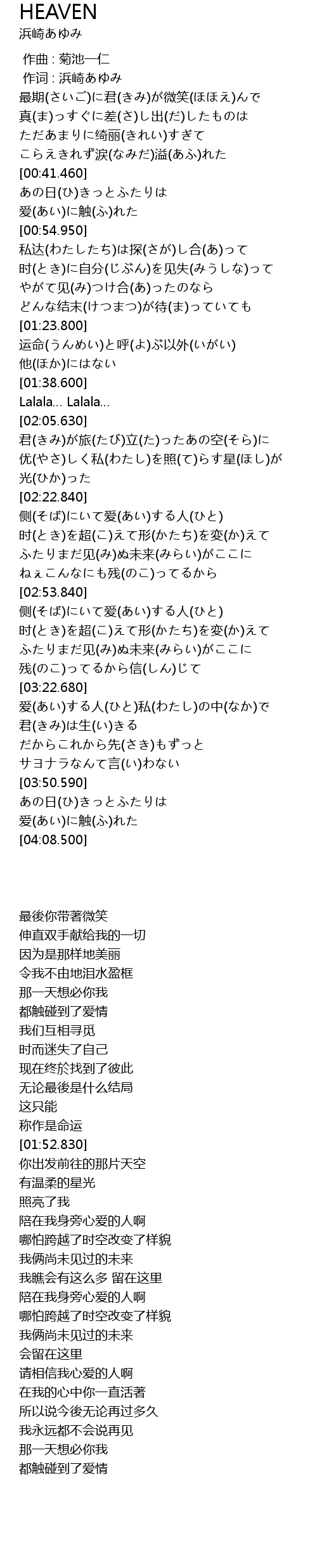 | [00:01.00] | 作词 : 浜崎あゆみ |