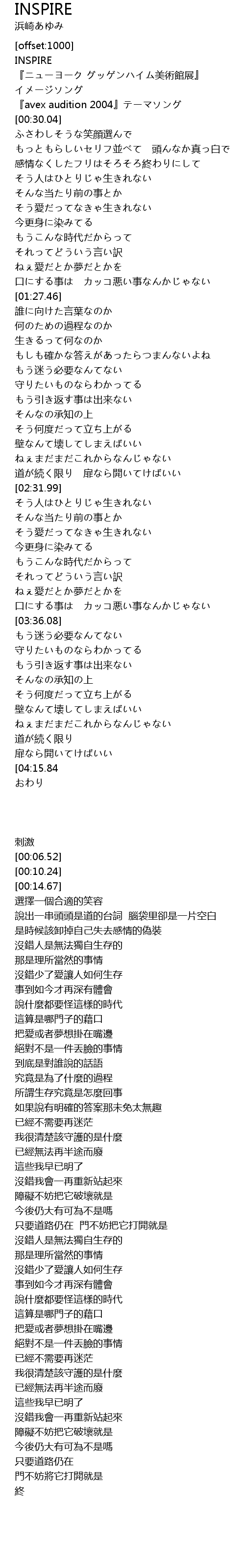 | [00:14.67] | 『avex audition 2004』テーマソング |