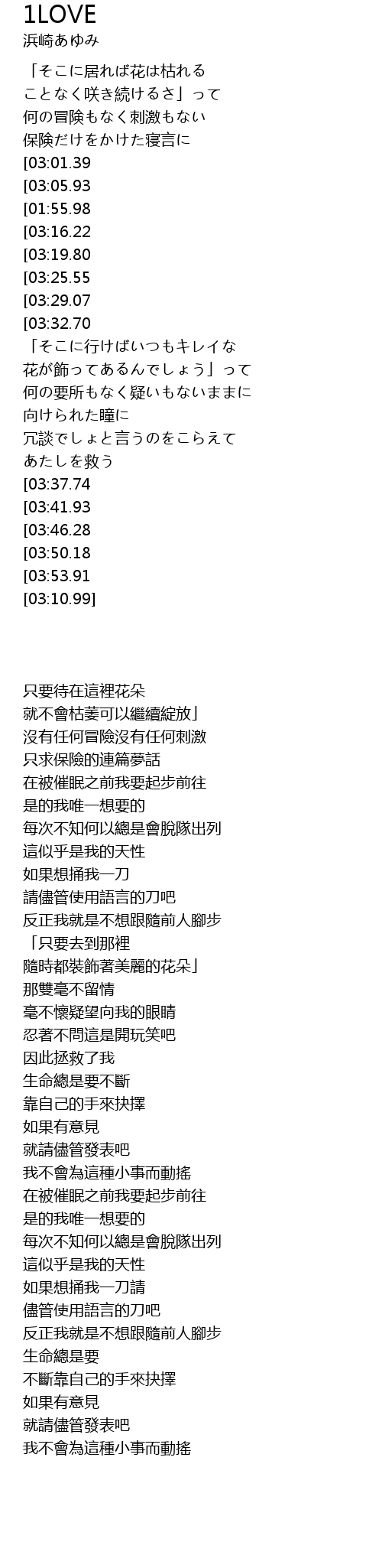 | [00:55.08][01:55.98][03:08.66] | JUST 1LOVE |