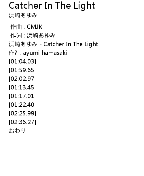 | [00:00.00] | 浜崎あゆみ - Catcher In The Light |