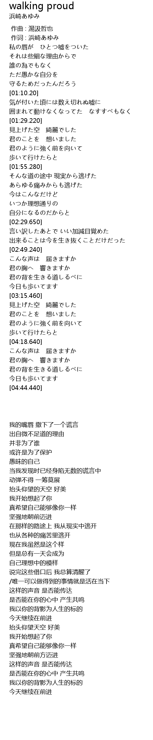 | [00:01.00] | 作词 : 浜崎あゆみ |