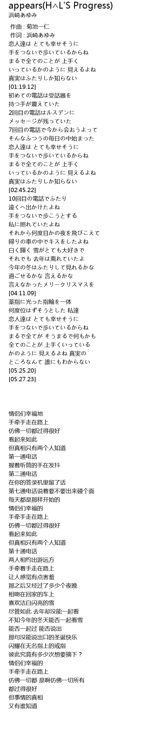 | [00:01.00] | 作词 : 浜崎あゆみ |
