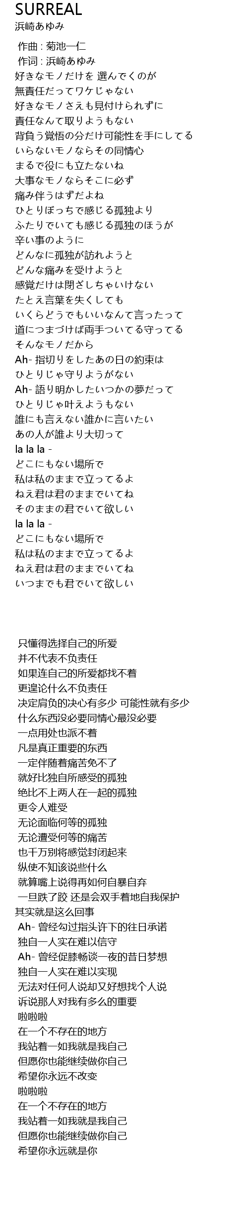 | [00:01.00] | 作词 : 浜崎あゆみ |