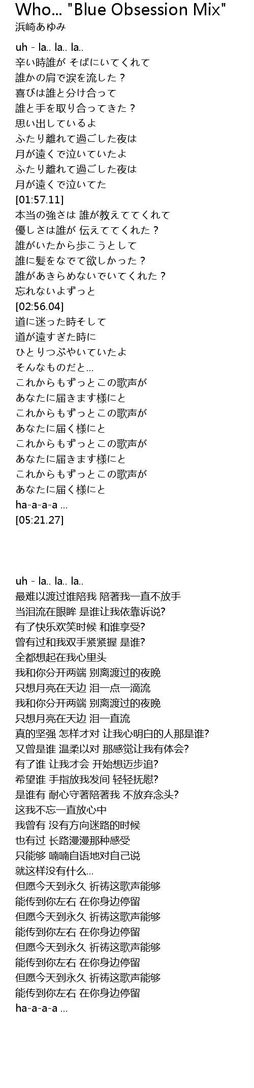 | 歌曲 | Who... "Blue Obsession Mix" |