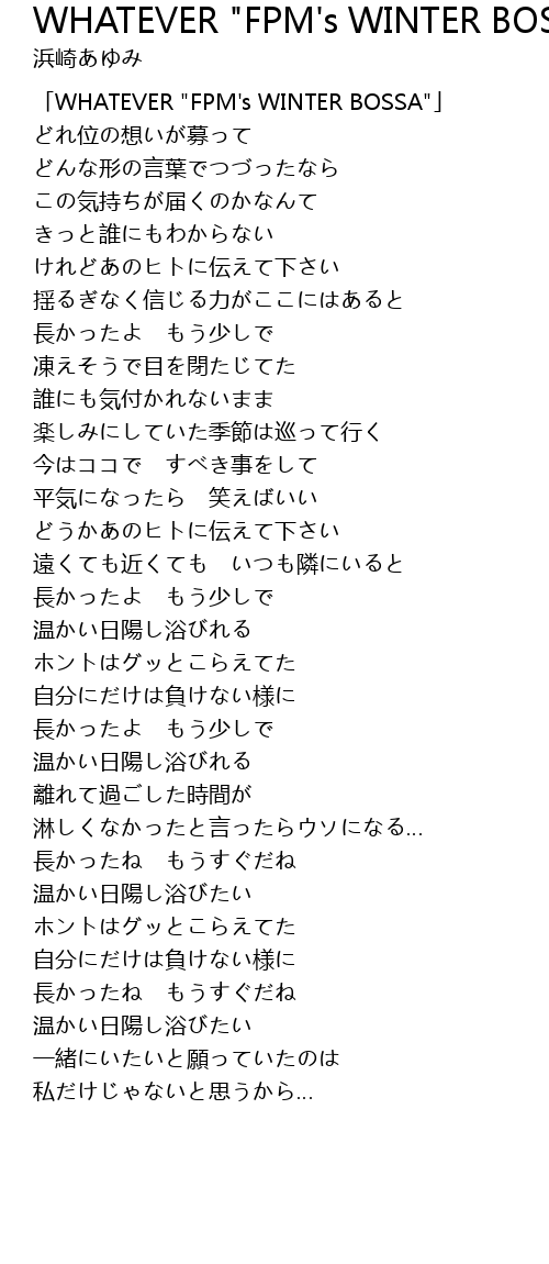 | [00:01.46] | 「WHATEVER "FPM's WINTER BOSSA"」 |