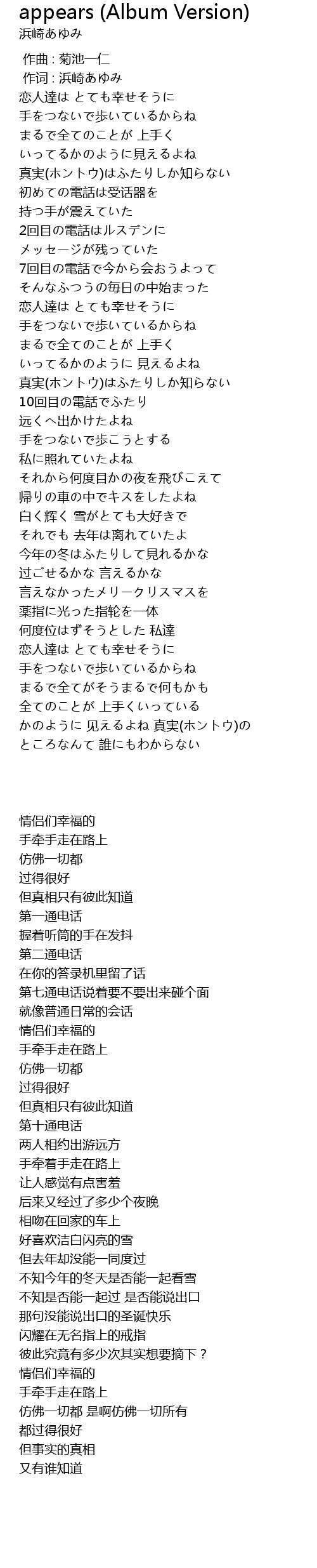 | 歌曲 | appears (Album Version) |
