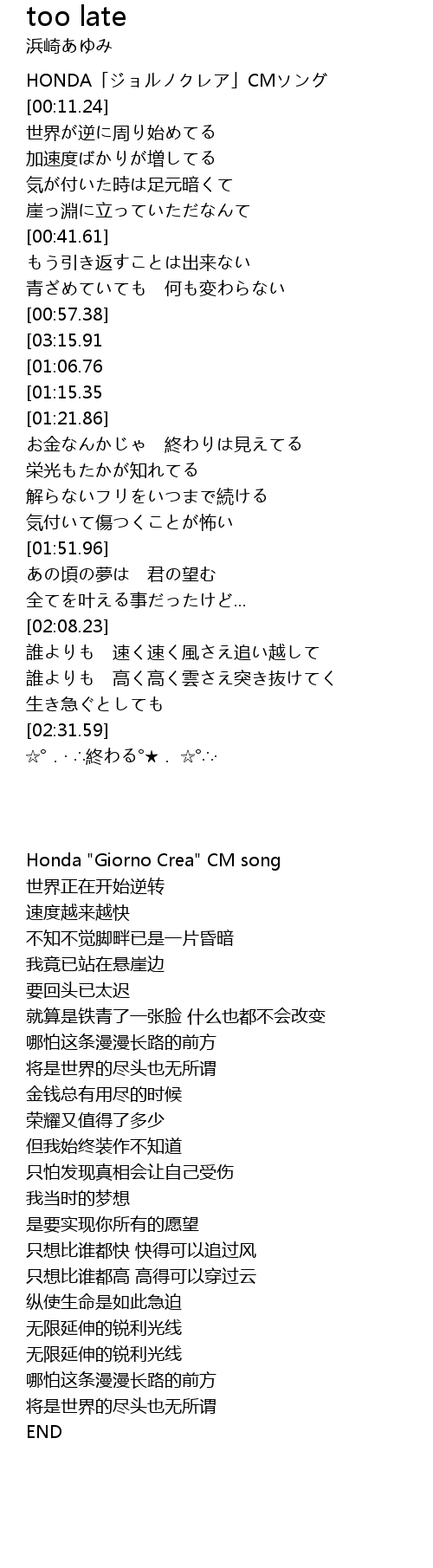 | 歌曲 | too late |