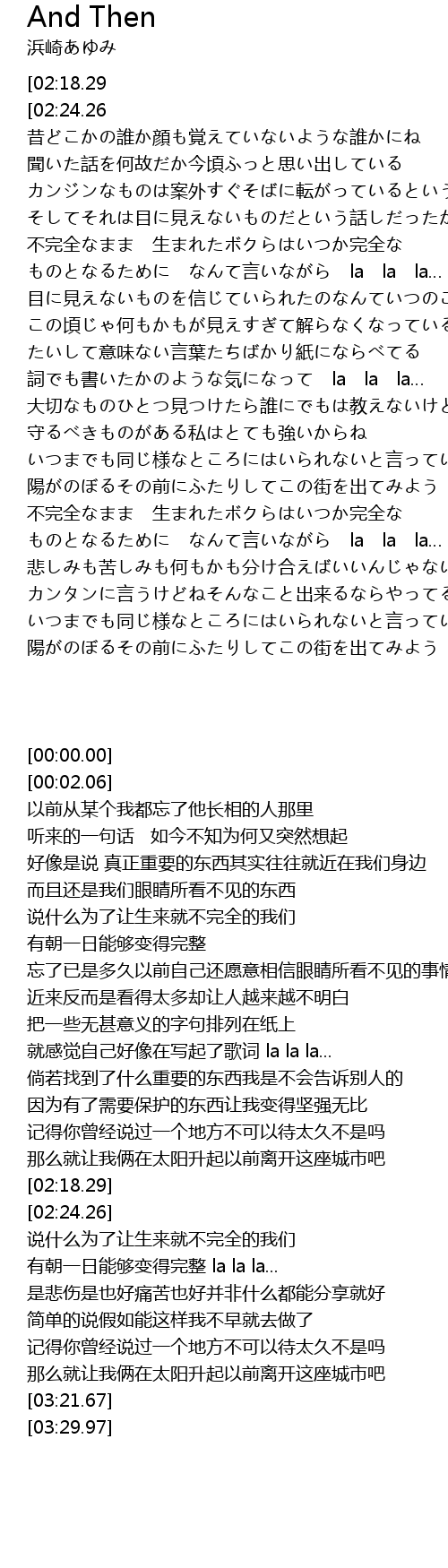 | [03:29.97][02:24.26][00:02.06] | AND THEN |