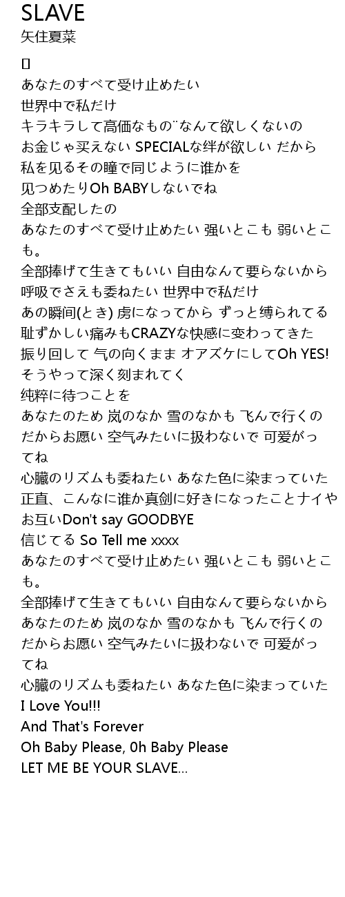 | 呼吸でさえも委ねたい 世界中で私だけ | |