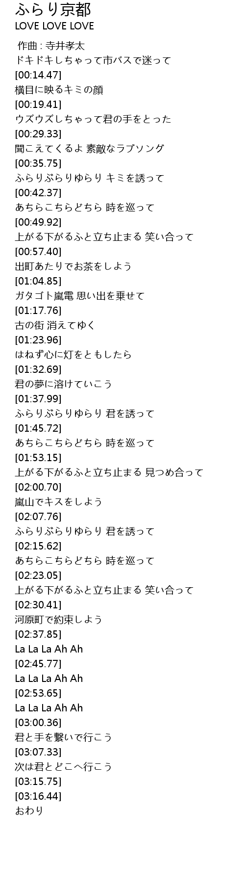 | [02:10.07] | ふらりぶらりゆらり 君を誘って |