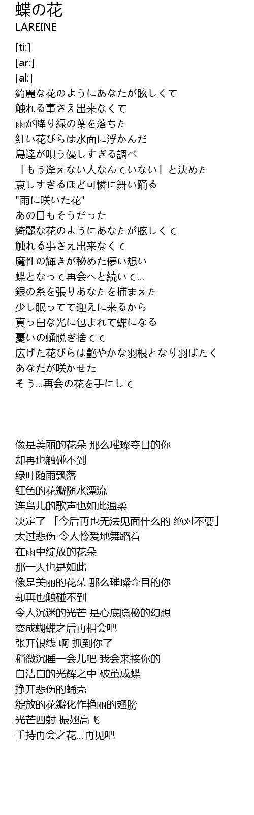| [01:45.76] | 蝶となって再会へと続いて... |
