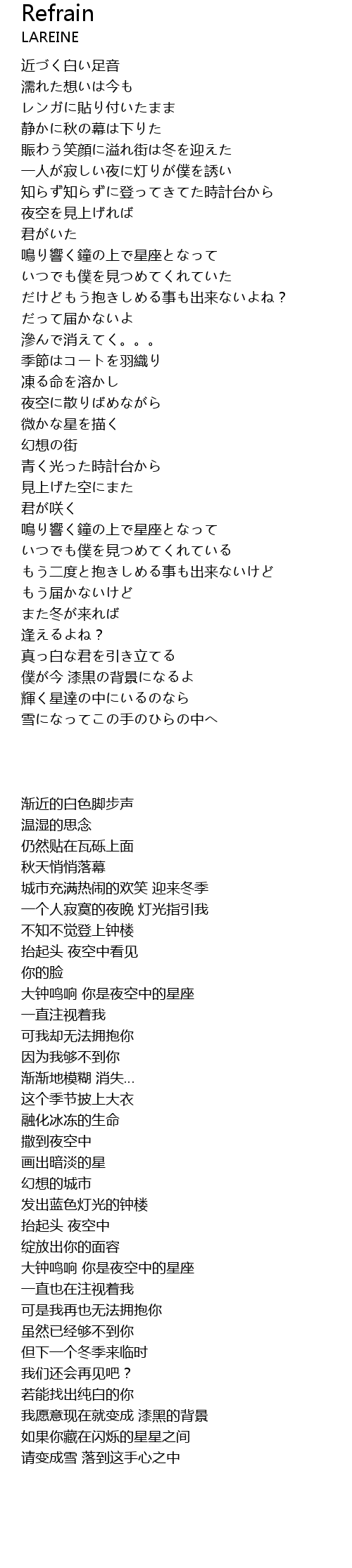 | 歌曲 | Refrain |