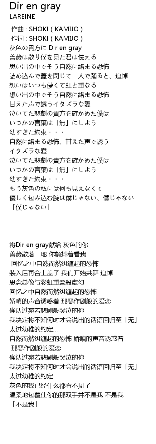 | [00:00.330] | 将Dir en gray献给 灰色的你 |