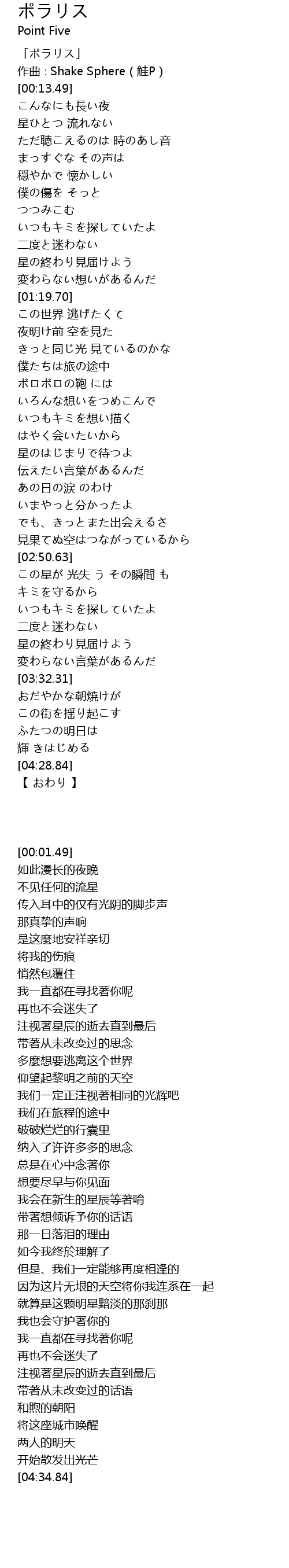 | [00:01.49] | 「ポラリス」 |