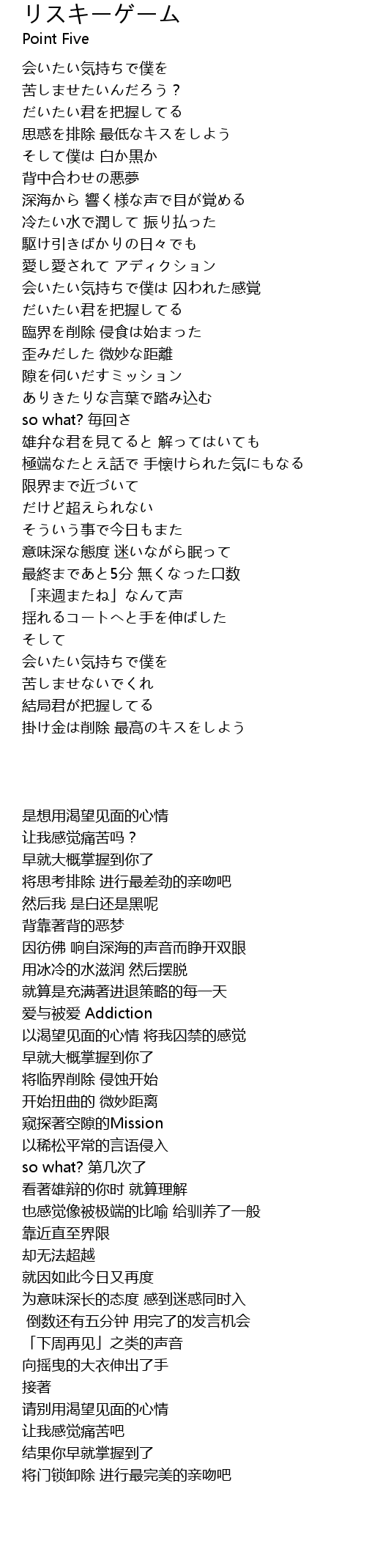 | 歌曲 | リスキーゲーム |