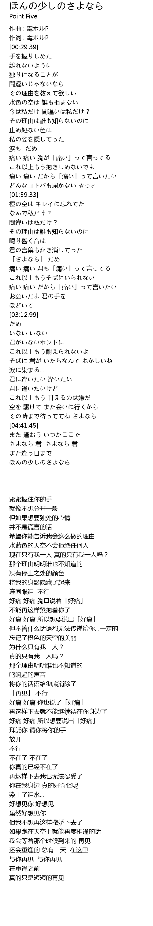 [00:17.16] 作词 : 電ポルP