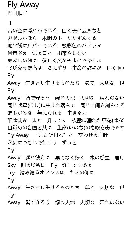 | Fly Away 皆で守ろう 绿の大地 大切な 污れのない 明日へ |