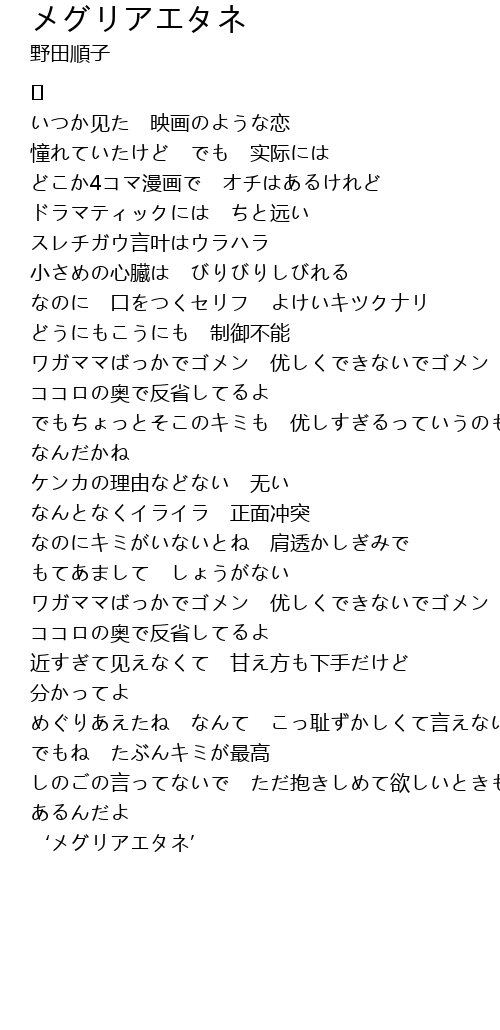 | 歌曲 | メグリアエタネ |