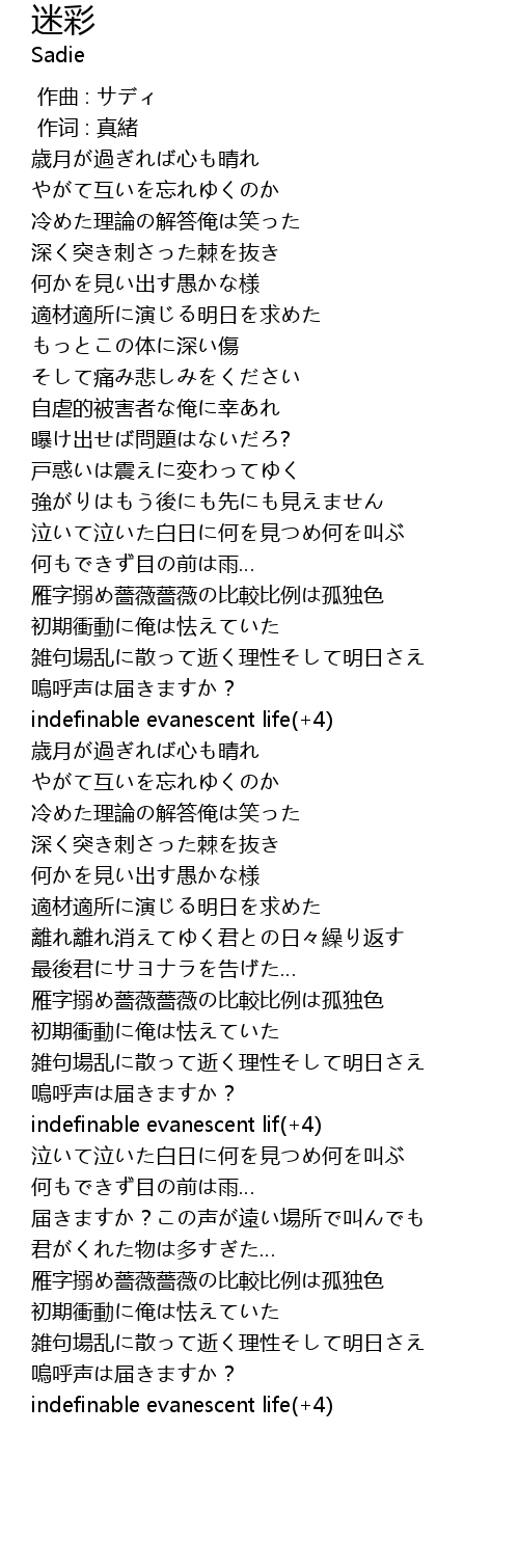 | [03:00.29] | indefinable evanescent lif(+4) |