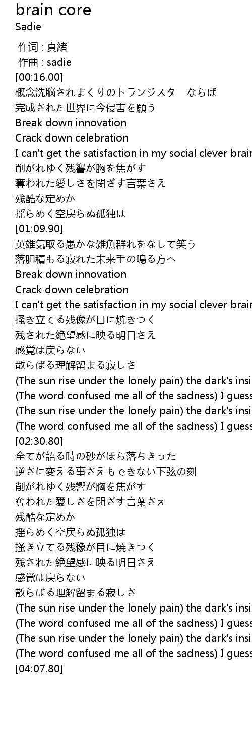 | [00:45.70] | I can't get the satisfaction in my social clever brain. |