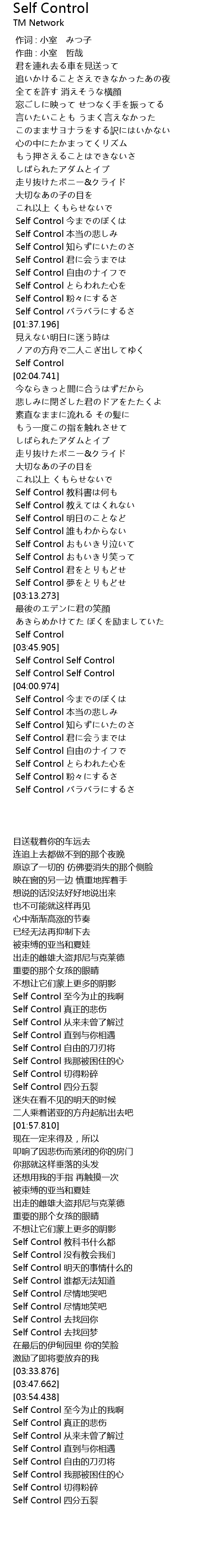 | [04:18.481] | Self Control とらわれた心を |