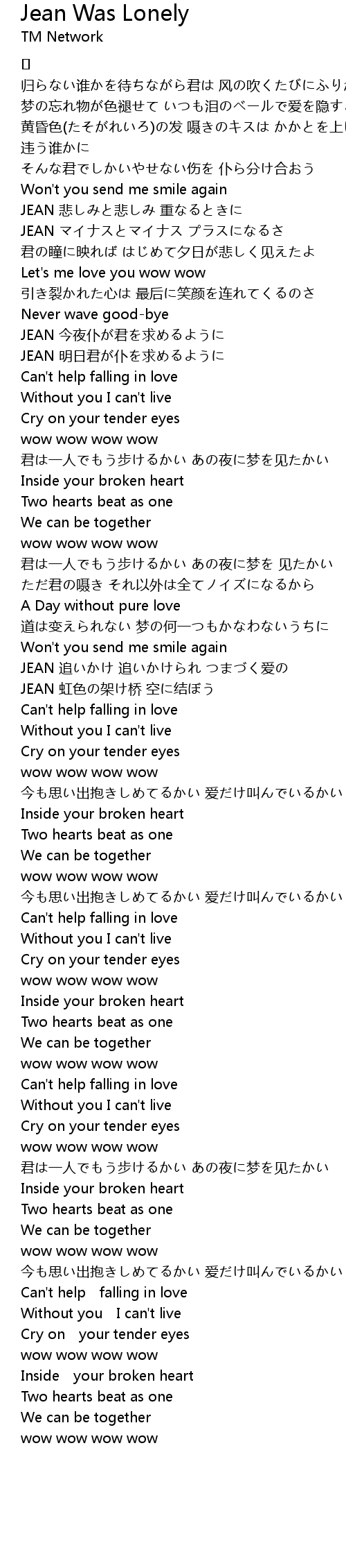 | 歌曲 | Jean Was Lonely |
