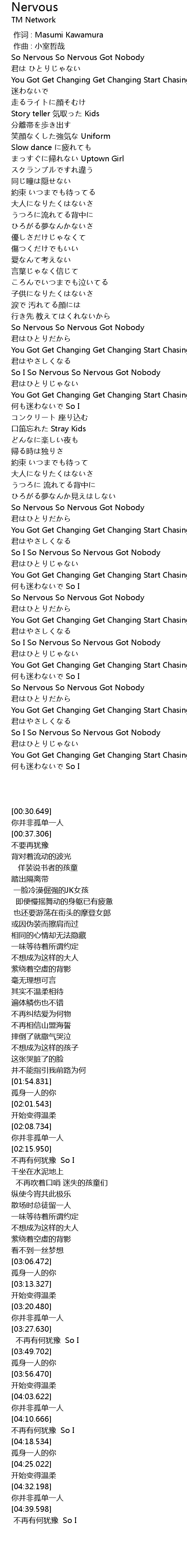 | [03:20.480] | So I So Nervous So Nervous Got Nobody |