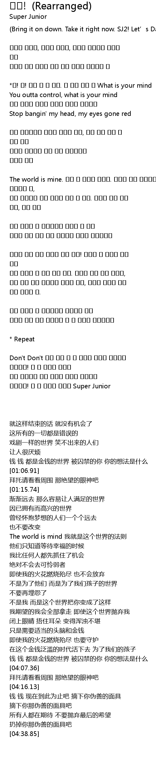 | [04:18.48] | 钱 钱 现在到此为止吧 摘下你伪善的面具 |